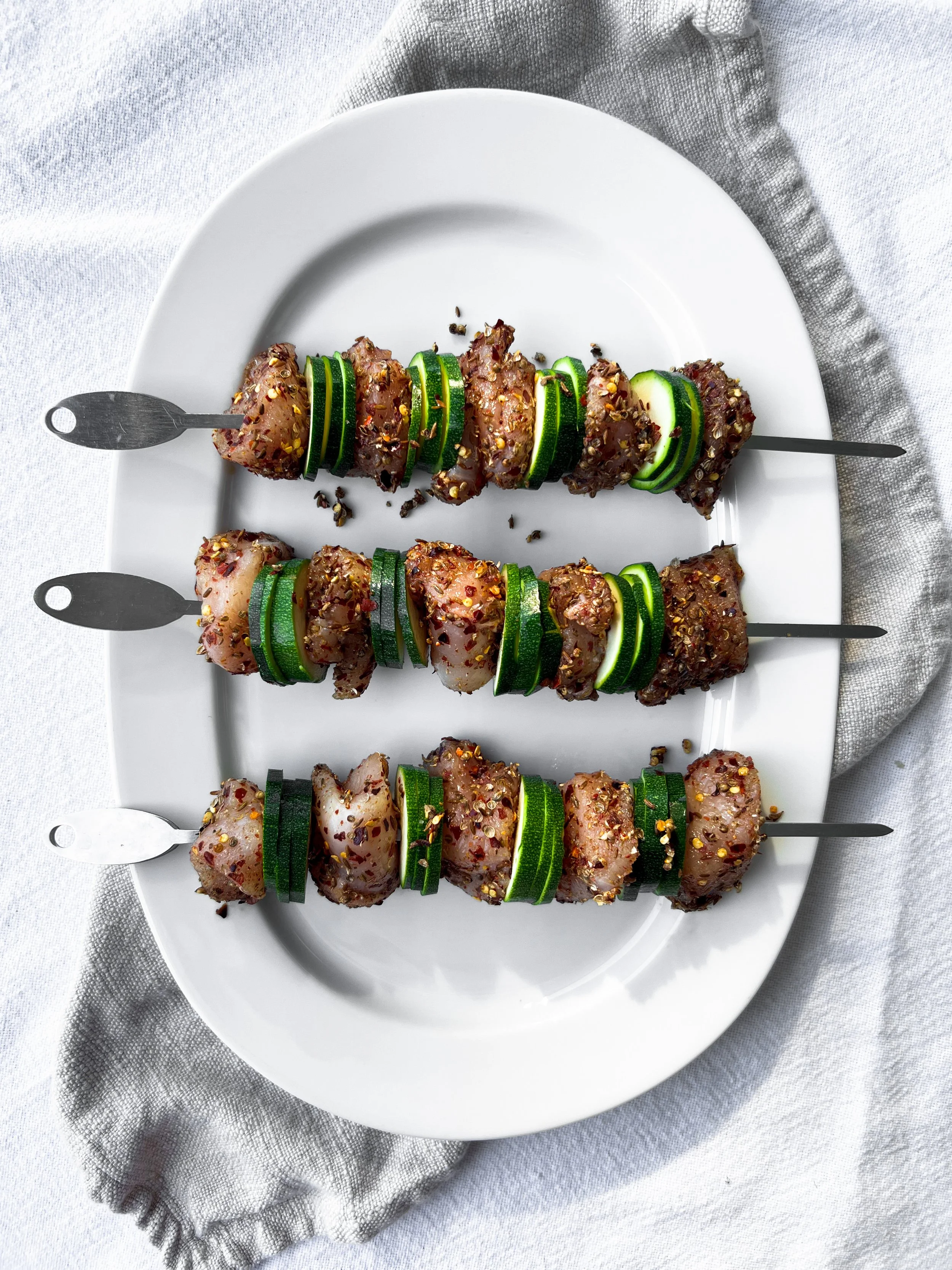 Spicy Cumin Chilli Chicken and Courgette Skewers!
