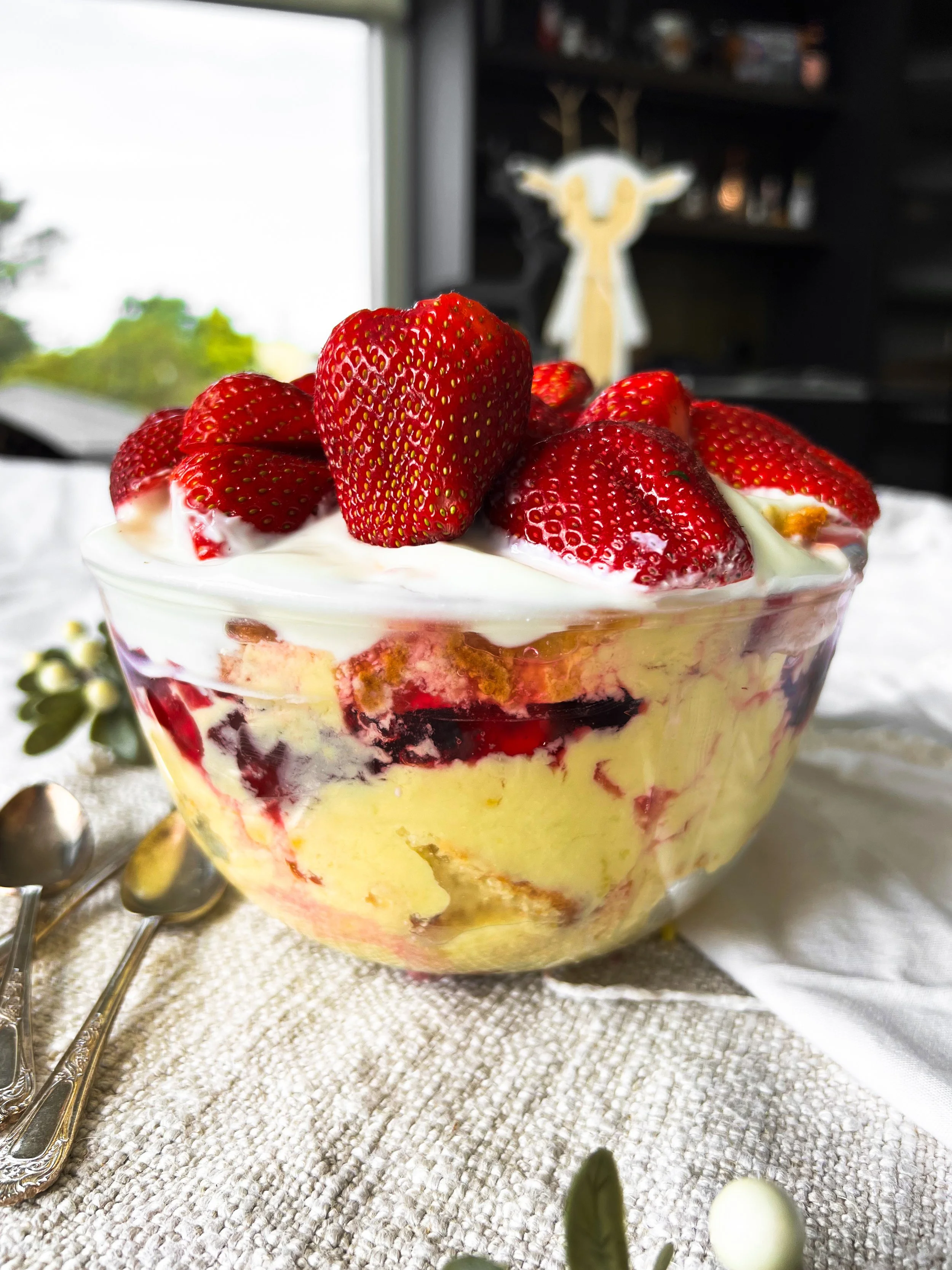 layers of sherry, cake, custard, jelly and yoghurt!.